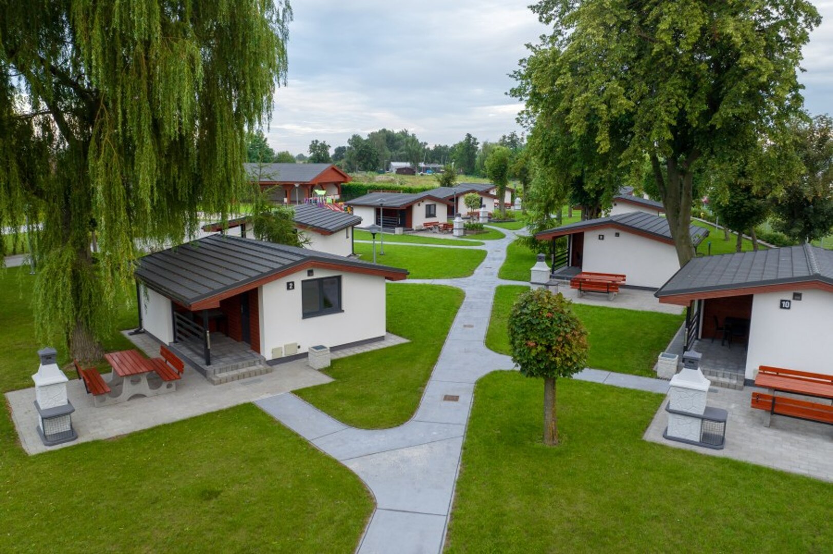 Na terenie naszego ośrodka znaduje się 12 domków kempingowych 4 – osobowych. Domki wyposażone są w dwa łóżka pojedyncze oraz jedno łóżko piętrowe, aneks kuchenny, łazienkę z prysznicem, telewizję oraz dostęp do WI-FI.