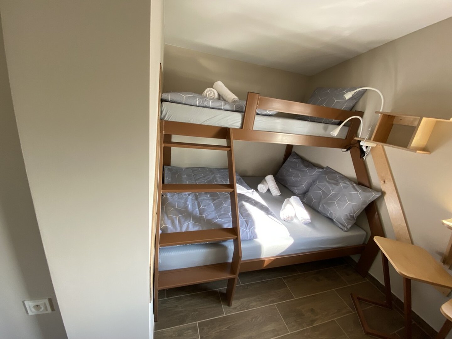 DOMEK Na terenie naszego ośrodka znaduje się 12 domków kempingowych 4 – osobowych. Domki wyposażone są w dwa łóżka pojedyncze oraz jedno łóżko piętrowe, aneks kuchenny, łazienkę z prysznicem, telewizję oraz dostęp do WI-FI.
